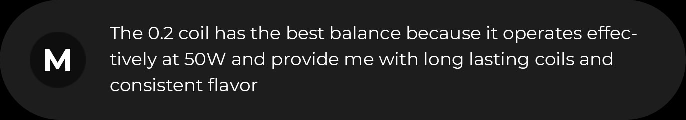 The fluffier CUMULUS cotton allows more space for liquid delivery and saturation to fix the problem with burning when there is a short supply of eliquid. That will also provide a more consistent experience and also longer enjoyment.