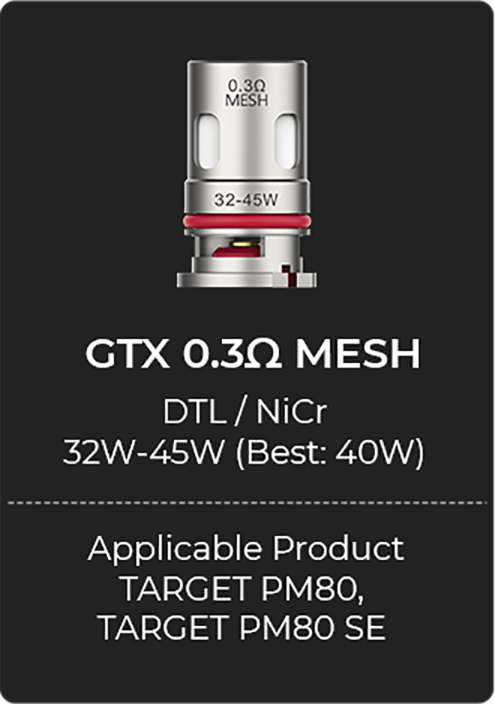 LUXE 80,LUXE 80S,GTX GO 40,GTX GO 80, SWAG PX80, LUXE PM40, TARGET PM80, TARGET PM80 SE, TARGET PM30, GTX ONE, GEN NANO, XIRON