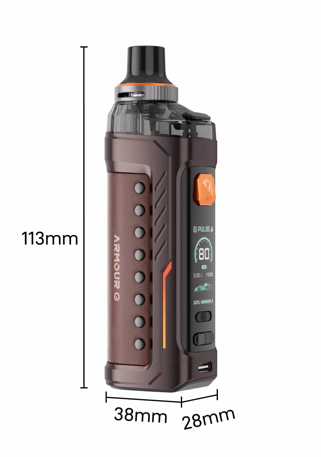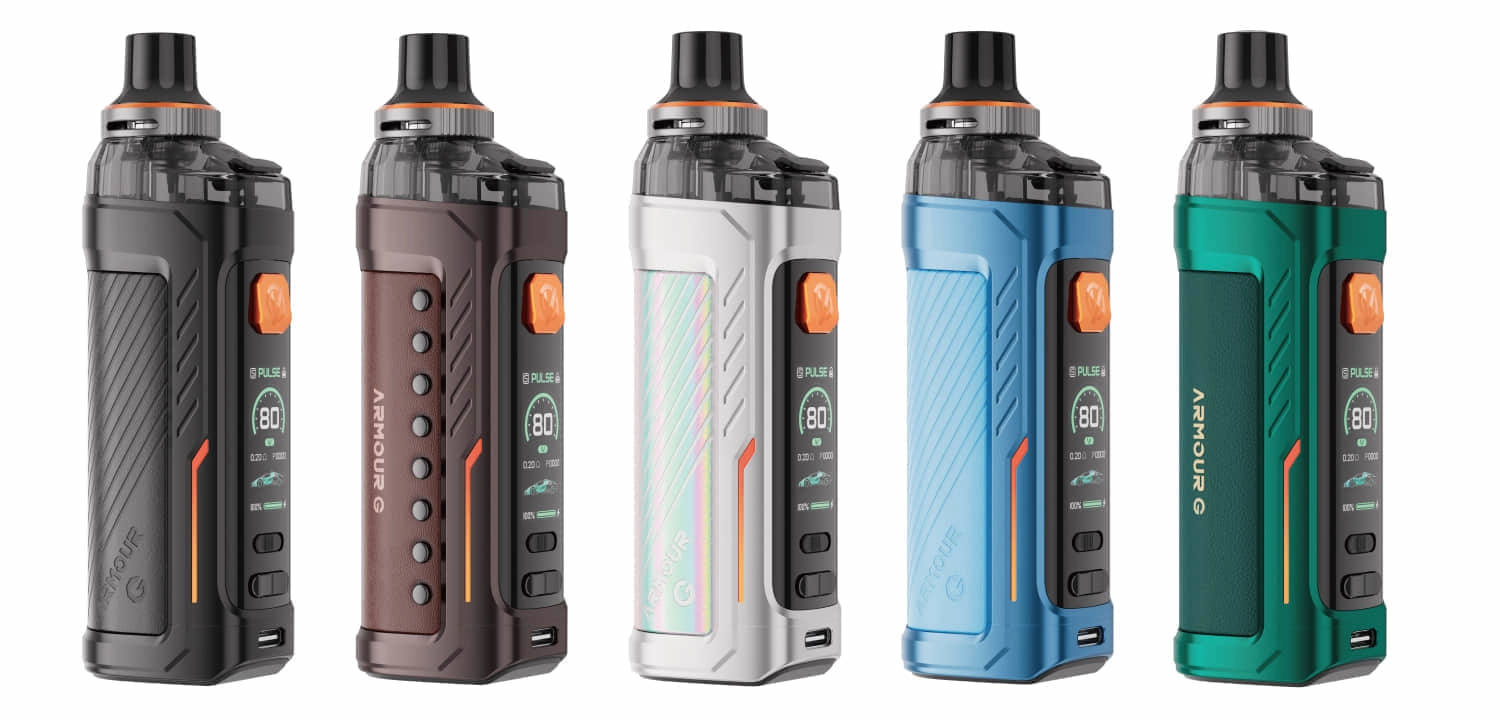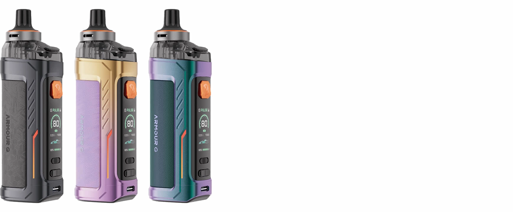 Featuring patented Mega Batt technology, the ARMOUR G boasts a 3000mAh battery that maintains a compact size while delivering 80W of power, making it more portable than ever. It uses the latest Neo PULSE MODE and COREX technology, providing stronger output and enhanced flavor consistency. The ARMOUR G Series pods utilizes top airflow and top-fill design, significantly reducing the risk of leakage. Additionally, the overall user interface experience has been further refined, offering users more stylish options.