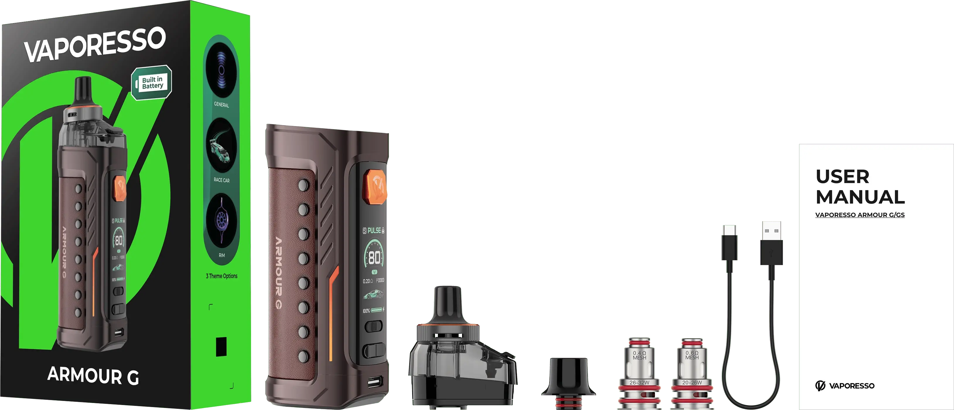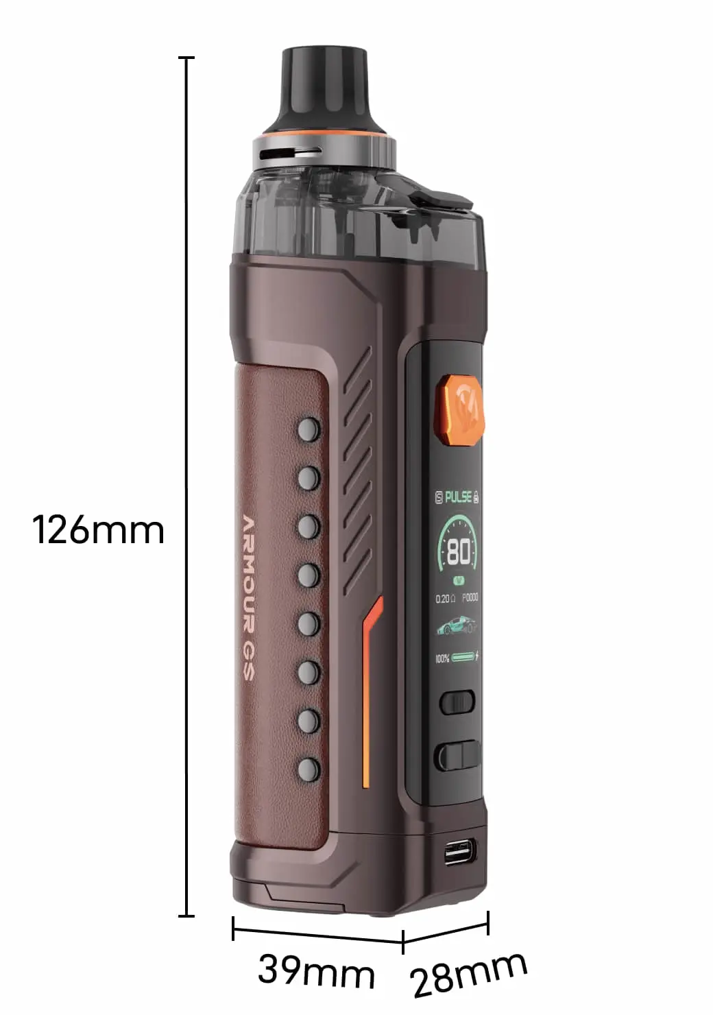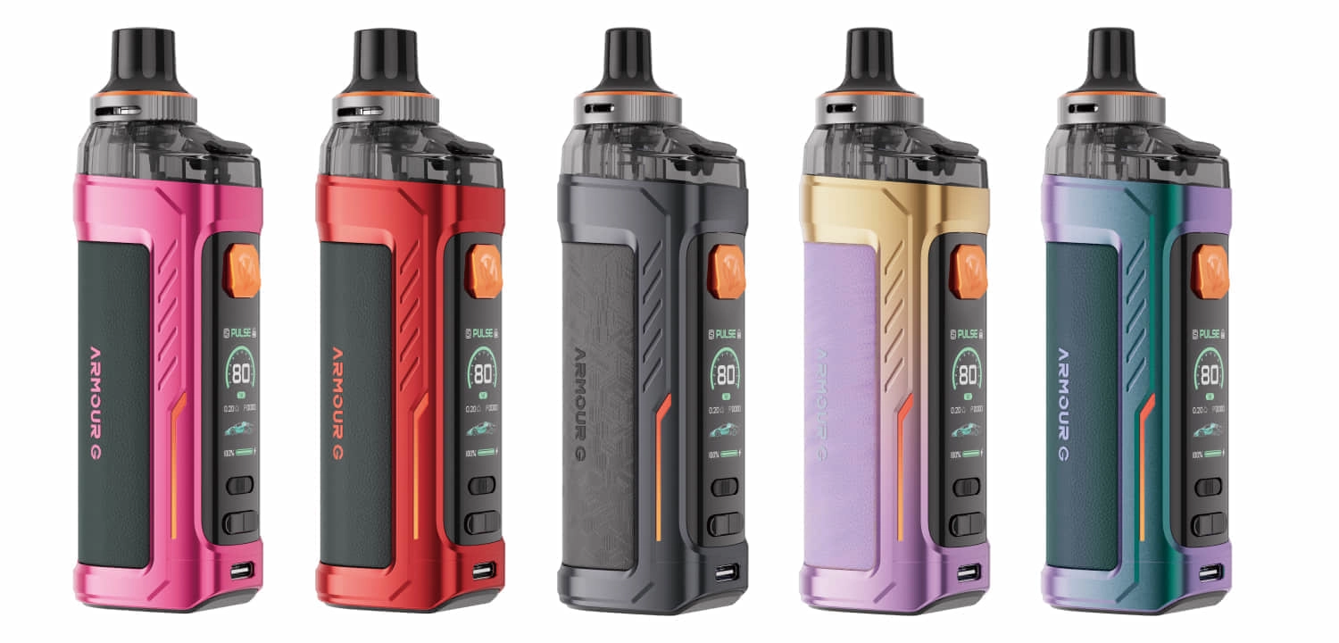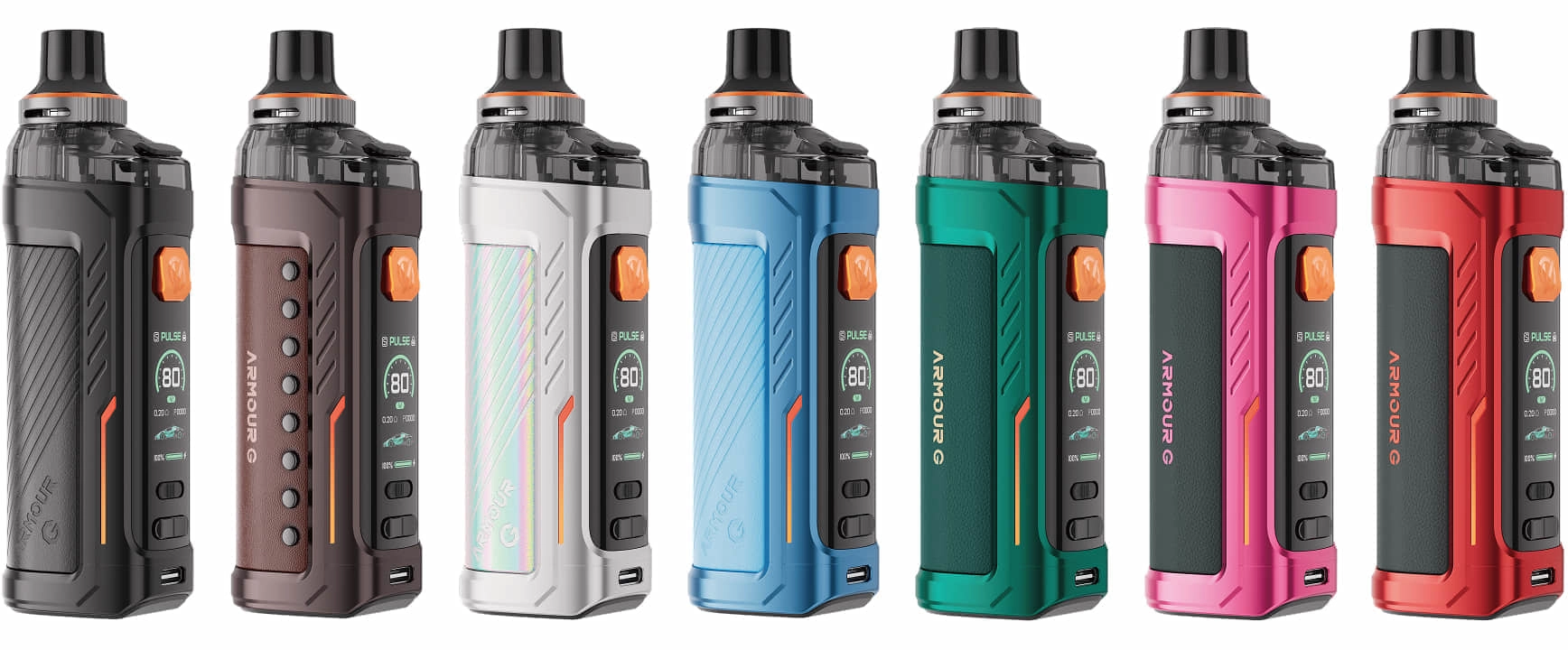 Featuring patented Mega Batt technology, the ARMOUR G boasts a 3000mAh battery that maintains a compact size while delivering 80W of power, making it more portable than ever. It uses the latest Neo PULSE MODE and COREX technology, providing stronger output and enhanced flavor consistency. The ARMOUR G Series pods utilizes top airflow and top-fill design, significantly reducing the risk of leakage. Additionally, the overall user interface experience has been further refined, offering users more stylish options.