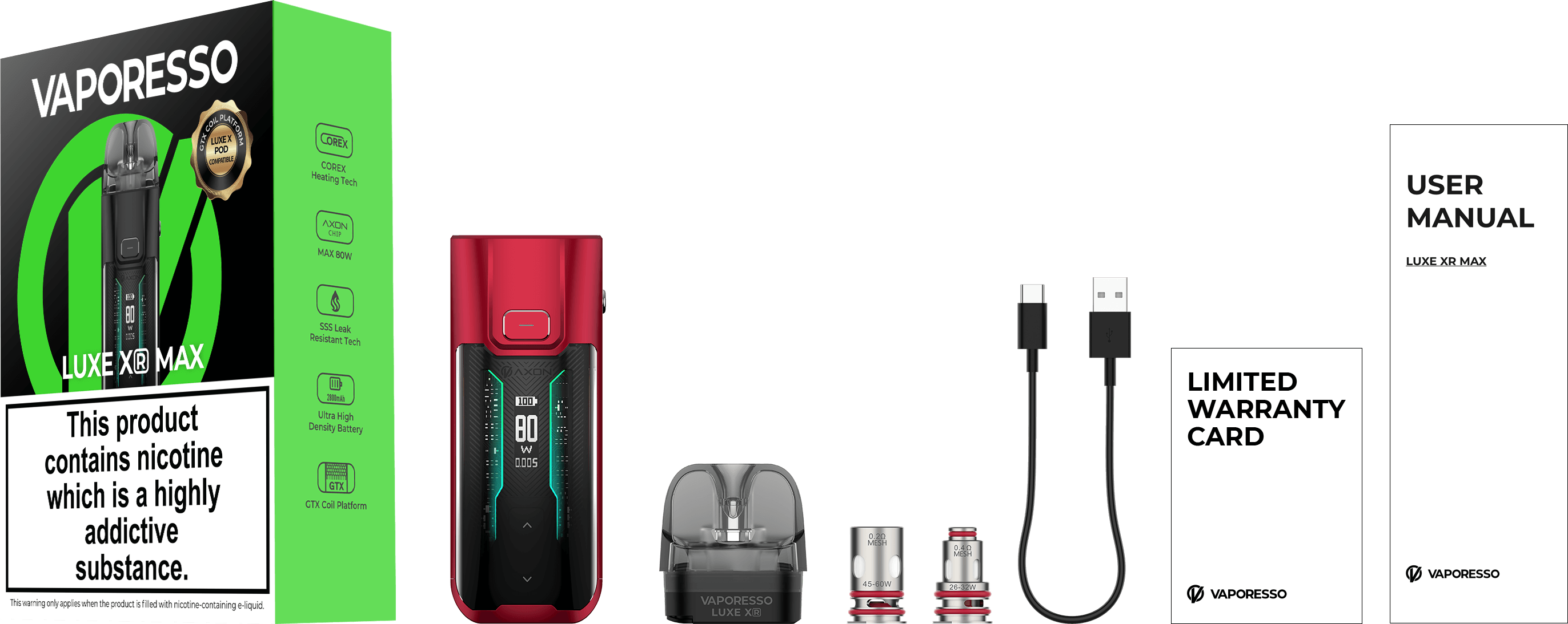 • 1 x VAPORESSO LUXE XR MAX Battery
